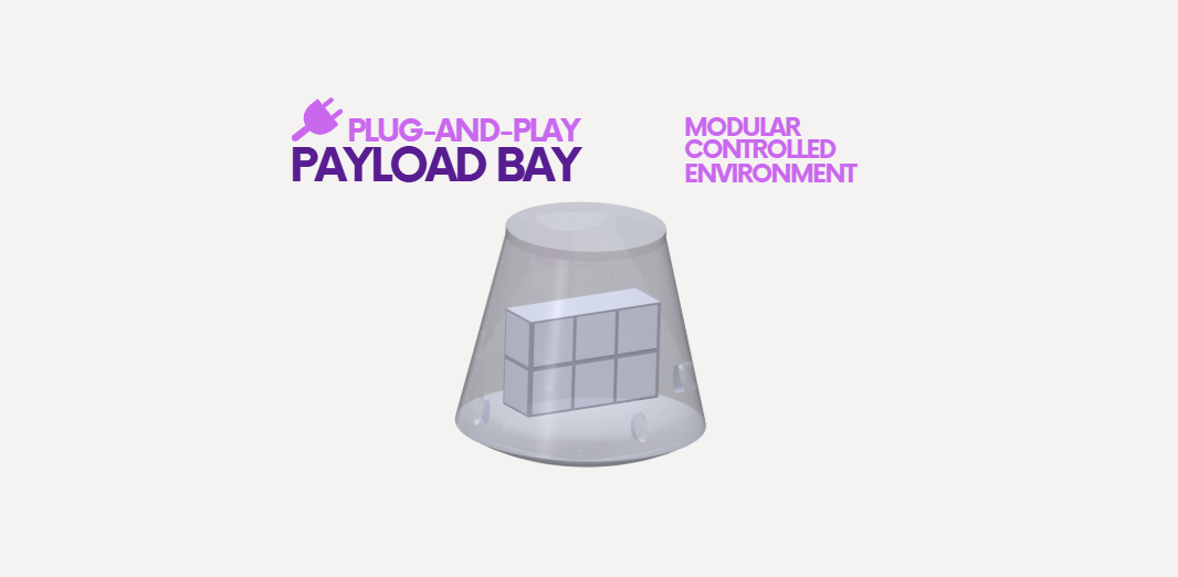Our payload bay provides a stable, plug-and-play environment designed to support sensitive experiments and hardware in microgravity. It offers controlled internal conditions (such as temperature and pressure) and seamless power and data access